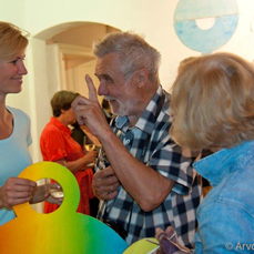 Enno Hallek, who works in Stockholm, is one of the most outstanding Swedish artists hailing from Estonia, having made a considerable contribution to the development of Scandinavian Pop Art and Conceptualism. He has also been an active participant in the Estonian art scene abroad. As part of his fourth solo exhibition in Tallinn (earlier shows were in 1990, 1995 and 1999), Hallek is exhibiting 1m x 1m circular plywood module paintings or "fraktals" hanging on the walls, from the ceiling and on movable clothing store stands. According to the theory of fractals, the same structures repeat in different enlargements and endless copies, without losing their initial meaning. Hallek has always been intrigued by all manner of theories and in addition to the fractal theory, he is also particularly captivated by the string theory, which attempts to explain how the universe is constructed of the tiniest particles, which carry information like a vibrating string, but which no one has seen with the naked eye. Hallek's main mission is to deal with the question of how to visualise what we cannot see, or in other words to paint theory. Using the principles of lego, recycling and experimentation, the development of his system of shapes, which began in 1990, lies in the endless combinations of fractals, the permanent positioning of components of works, re-painting and the impending dismantling of recently created symmetrical or ideal compositions in order to combine new, unsymmetrical configurations. Yet even a knight and a flea – the heros of Hallek's humourous video of the same name (1999) – are fractal creatures due to the technology of their armour and similarity of their external shells. While Hallek was initially intrigued by the construction of systems, a new level of narration has now been added to the systems: every work tells its own story (read the titles).